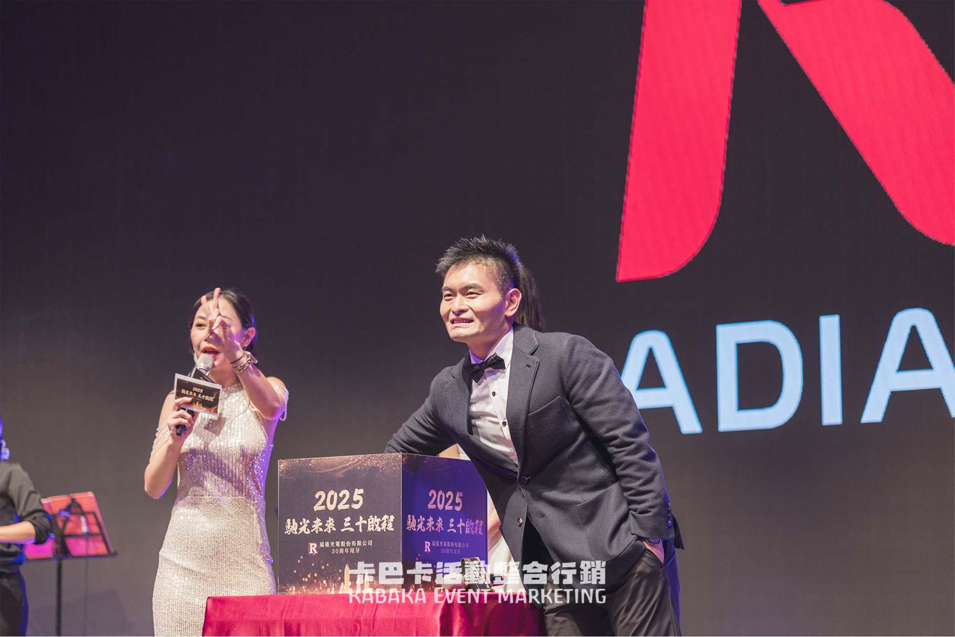 卡巴卡活動整合行銷公司很榮幸為瑞儀光電規劃並執行這場別具意義的30週年尾牙宴。本次活動由我們以一條龍服務,包含前期活動規劃、流程與節目安排、現場統籌與執行項目。透過完善的活動規劃與互動流程設計,呈現一場不僅止於尾牙,更象徵企業里程碑與未來啟程的重要盛會。
